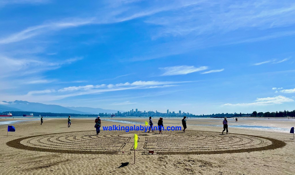 I will draw and host a Summer Equinox Labyrinth Meditation Saturday June 21, 2025 from 10 am to 12 noon at Spanish Banks in Vancouver, British Columbia.